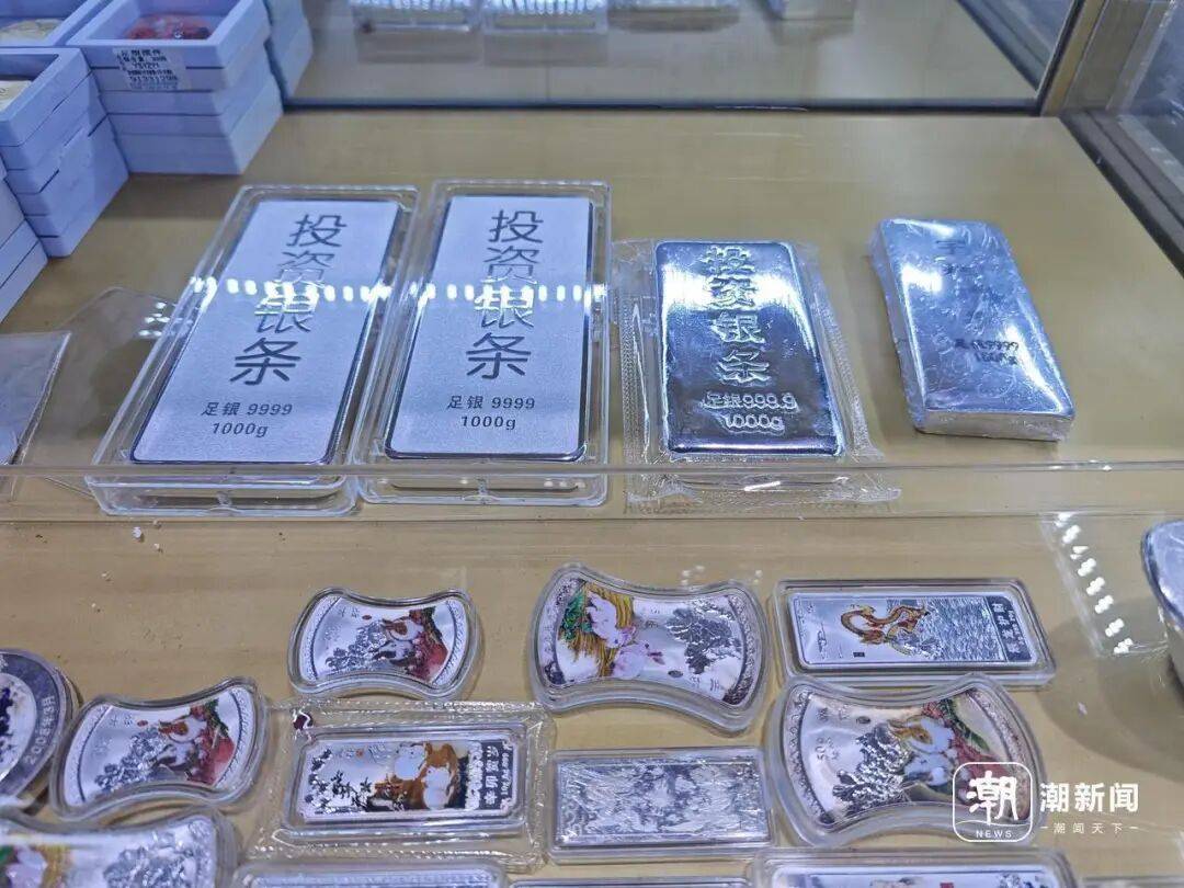 走进白马珠宝市场的一家银饰店,柜台里整齐摆放着各种银手链、银项链等饰品。但前来咨询银条的顾客明显更多,不少消费者一进门便直奔主题:“有没有银条?”“现货多久能提?”