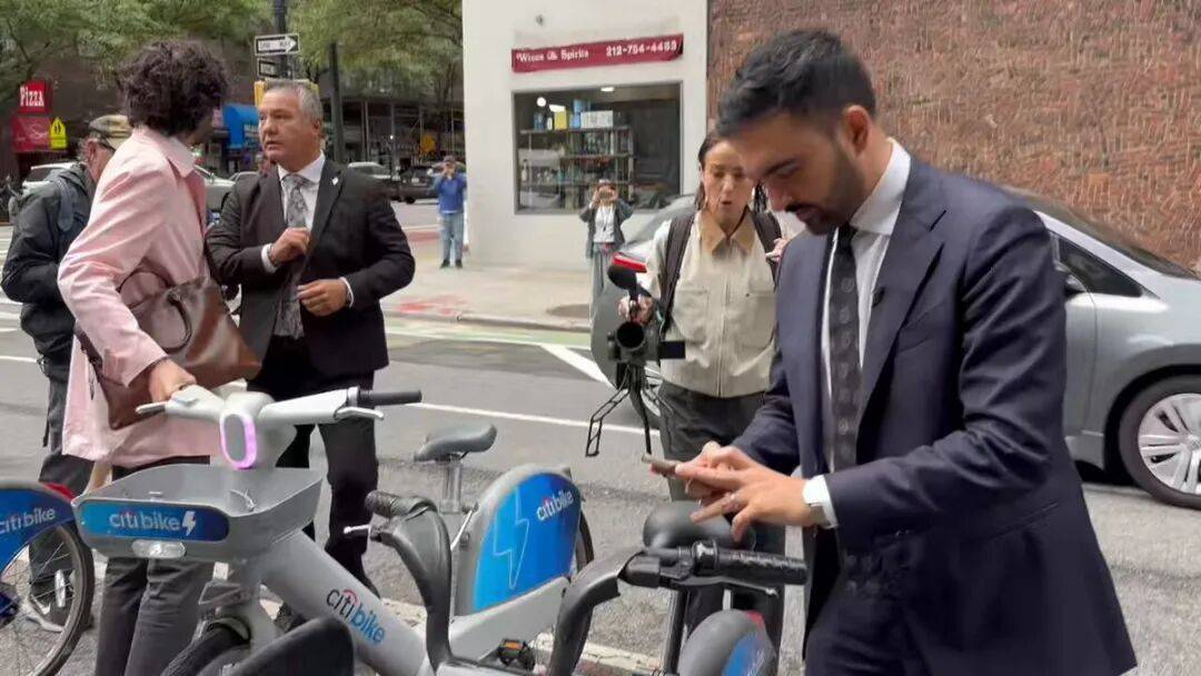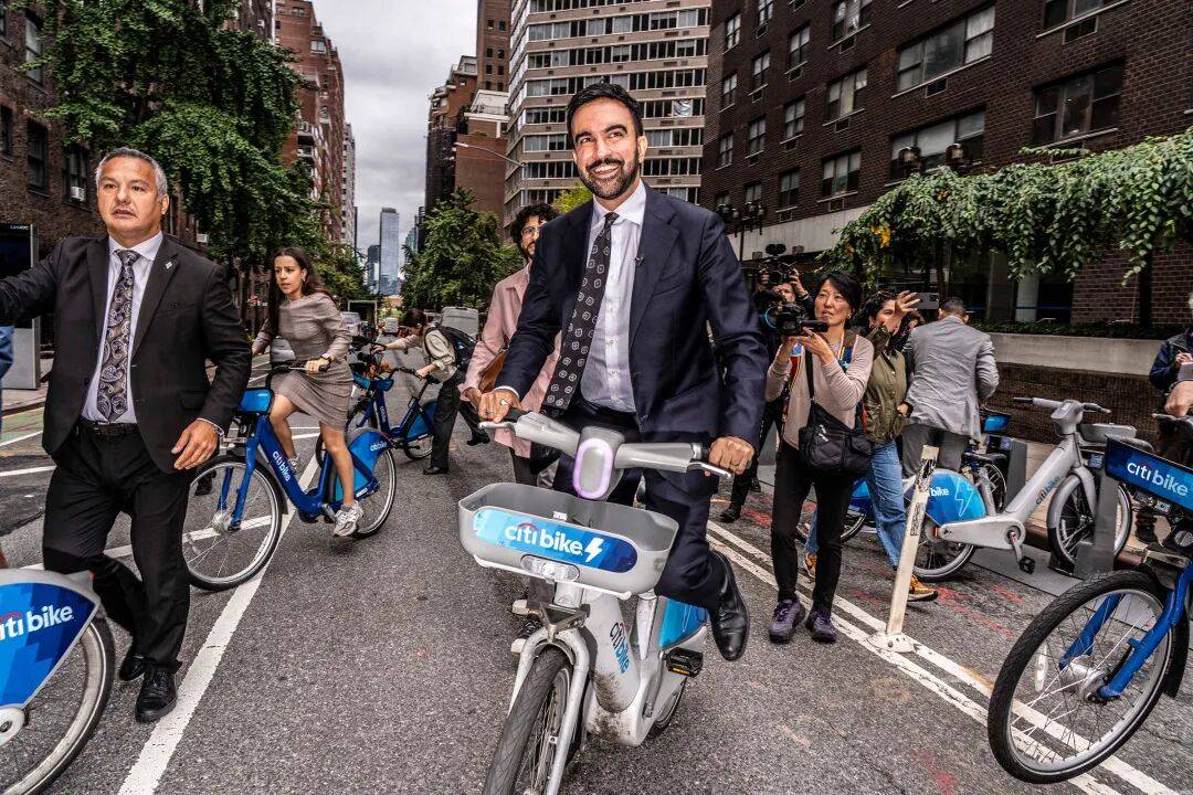 纽约市长通常配有庞大的安保团队和防弹SUV车队,前任市长最爱坐着警灯闪烁的车队去夜店。但佐兰却是共享单车Citi Bike的狂热信徒↓