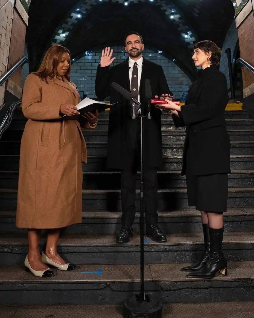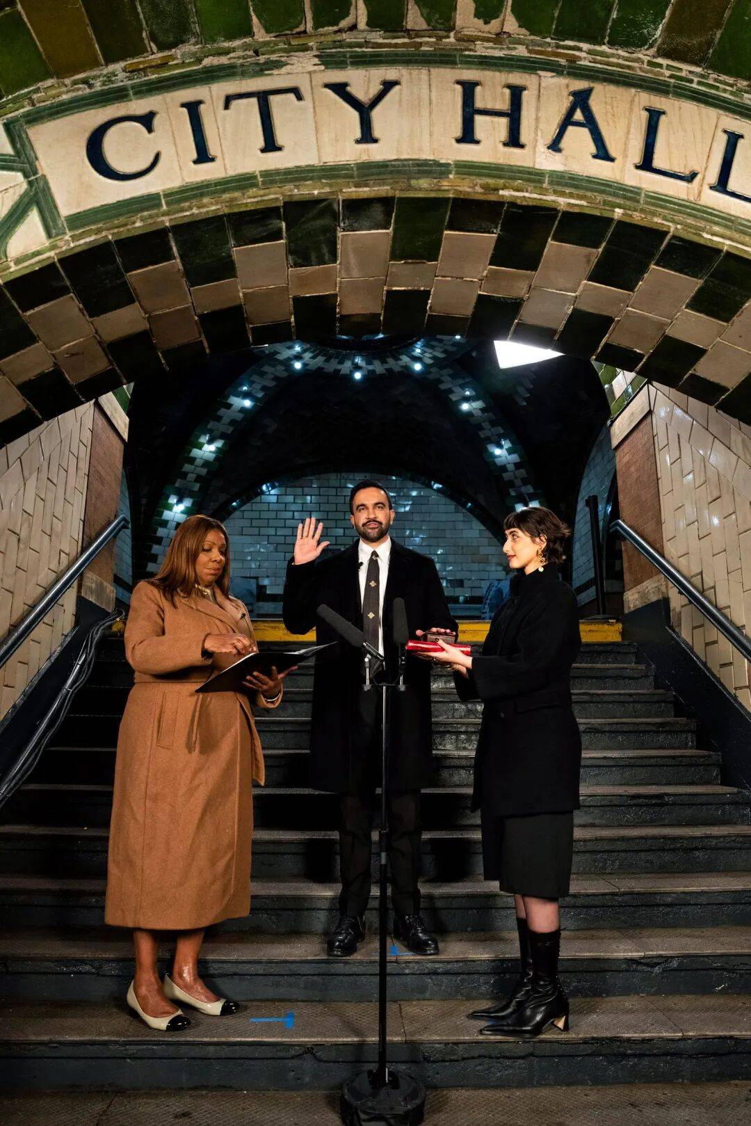 宣誓到一半时,还被隔壁轨道上的轰鸣声打断。展示一波高情商发言:“这就是纽约最真实的心跳声。如果连这点噪音都忍受不了,还怎么治理这座吵闹的城市?”