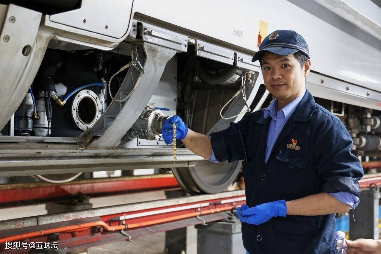 当晚,南宁动车所的检修任务高达50组,是建所以来的最高纪录,机械师们必须分秒必争,确保所有列车次日能准点出库。地勤机械师严芝科和同事张浩在完成常规检修的同时,接到了这个特殊任务。通过研判,金手链最可能的位置在卫生间下方的集便器真空中转箱内。那是一个混合着排泄物与异味、空间极其狭窄的密闭容器。晚上八点多,列车刚一停稳,两人便迅速拆卸裙板,打开了这个“潘多拉魔盒”。面对恶臭和逼仄的空间,严芝科几乎将整个手臂探入箱内,在近乎黑暗的环境中徒手摸索。经过长达40分钟不断变换角度的寻找,他的手指终于触碰到那根冰凉的金属链条,并成功将其取出。