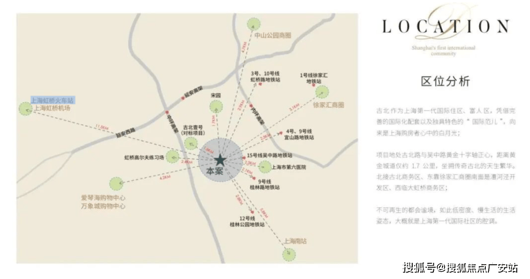 项目地处闵行长宁交界的古北板块,项目依托虹桥交通枢纽和长宁徐汇商圈,交通便利配套成熟,是上海第一个大型高标准的国际豪宅社区!