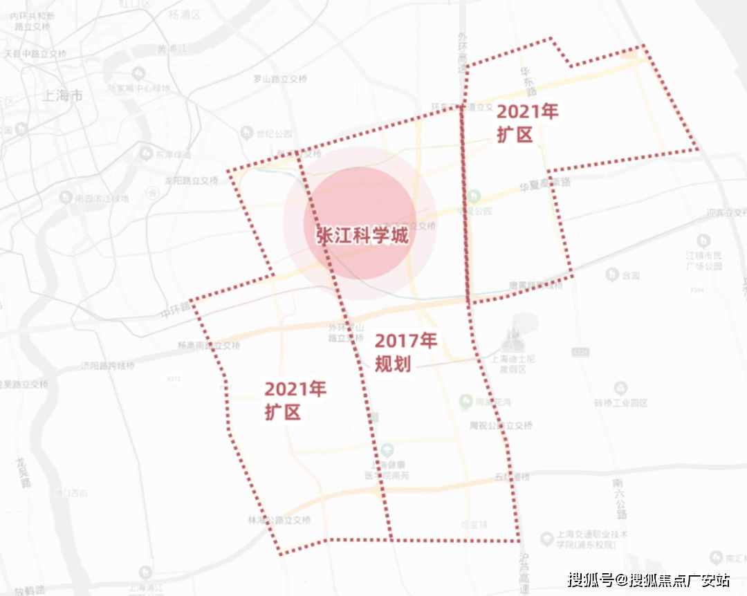 双向六车道的申江路主干道,连接外环和中环,往北经过周康板块30分钟左右可直达张江。