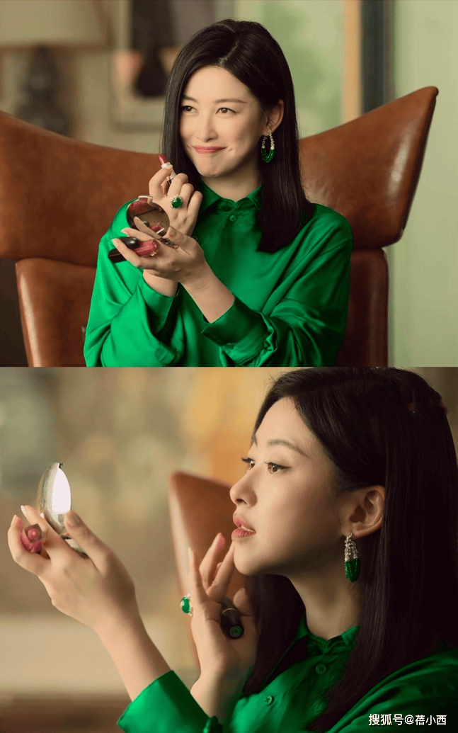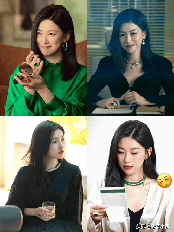 配饰的点睛作用在朱珠的造型里也体现得淋漓尽致。她偏好华丽的珠宝来提升造型亮点,例如绿色系的翡翠耳环与项链,既显得清新脱俗,又与整体色彩呼应,营造出高级而华美的视觉效果。翡翠材质对成性尤其友好,年轻人若尝试这类珠宝,可能需要更保守地搭配以避免突兀。