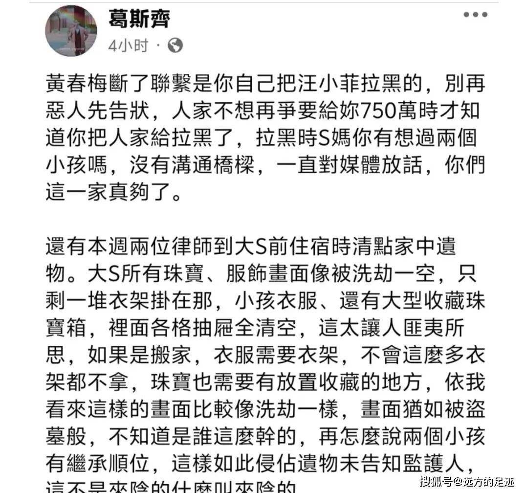 2月初大S在日本去世,珠宝下落就成了焦点。一开始有人说珠宝被拍卖,小S和妈妈赶紧否认。小S公开说她走了大家别添乱,但消息还是传得沸沸扬扬。后来有传闻指汪小菲可能搞鬼,S妈则暗示有人故意放线月有个叫葛斯齐的人直播爆料,说律师去大S家清点遗物时发现柜子空了,首饰盒都是空的。这次小S没回应,网友建议S妈起诉葛斯齐,但S妈说没必要抬举他,觉得吵来吵去没意思。伟德国际官网
