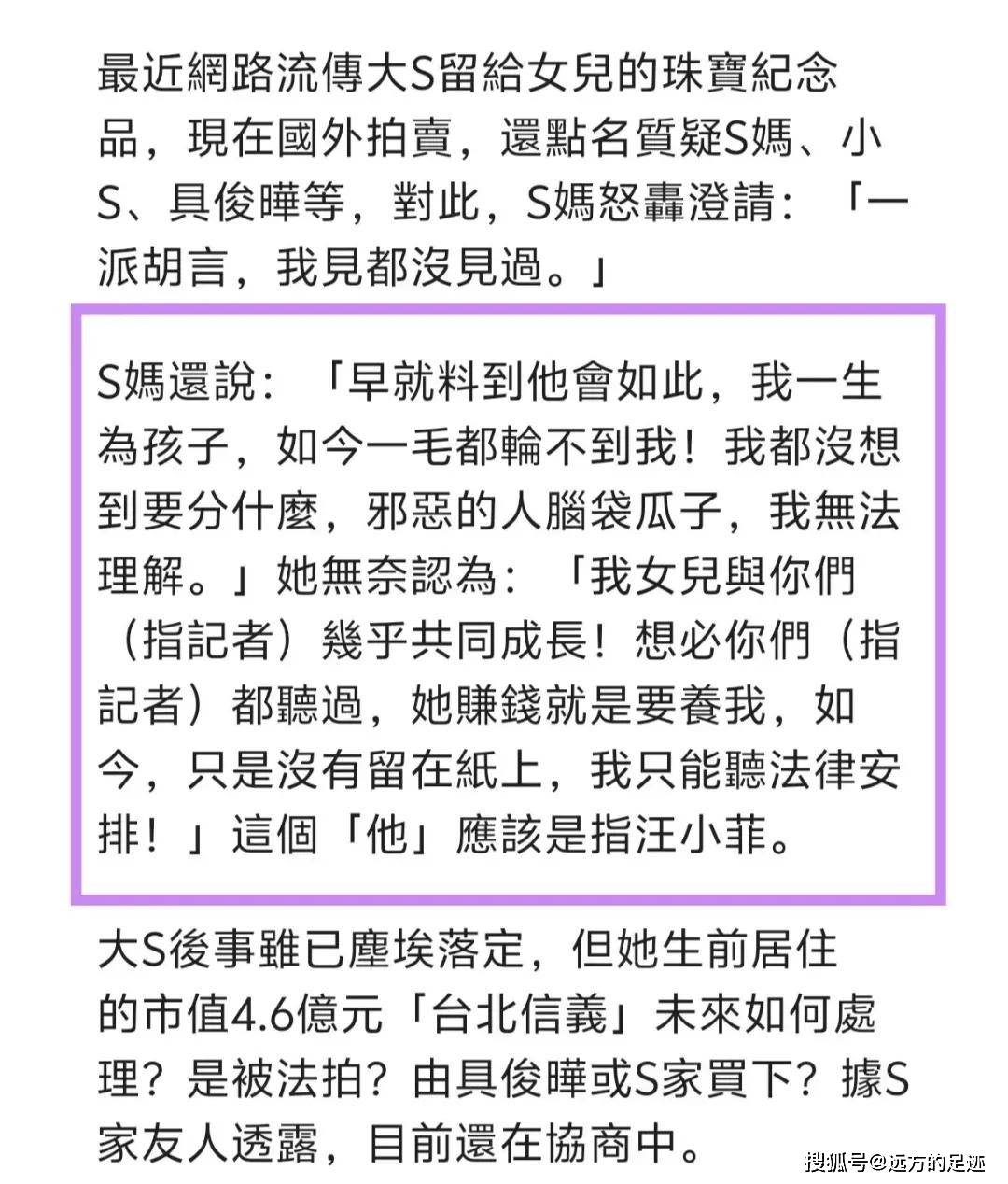 蝴蝶结发夹的确认至少说明S妈那边有保存大S物品,但其他东西的下落还没说法。整个事件现在卡在双方沟通不畅,加上舆论压力,可能还要拖一阵子。