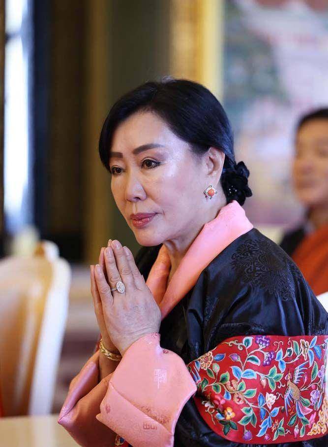 多吉·旺姆是不丹前任国王吉格梅·辛格·旺楚克的四位王后之一。因在姐妹中最为年长,她在丈夫退位后被尊称为“大王母”。老国王当年迎娶了四位亲姐妹,她们在同一天成为他的妻子,并共同孕育了十位子女。如今在位的国王凯萨尔·南杰·旺楚克,便是由三王后所生。而多吉·旺姆自己育有一子一女,此行二人皆随侍在侧。