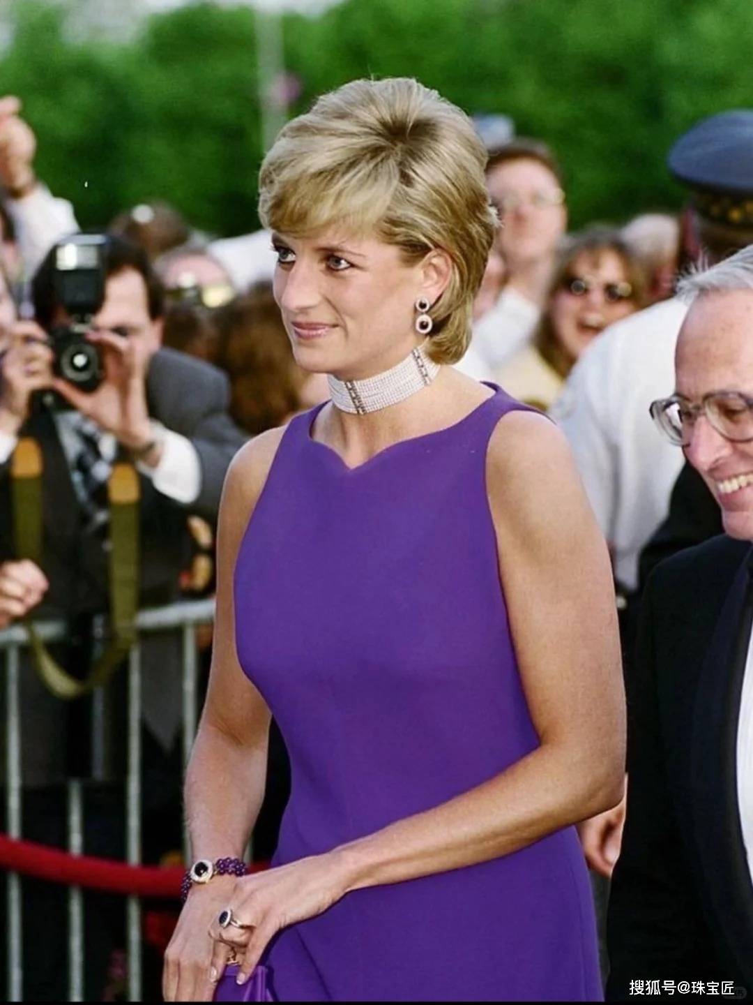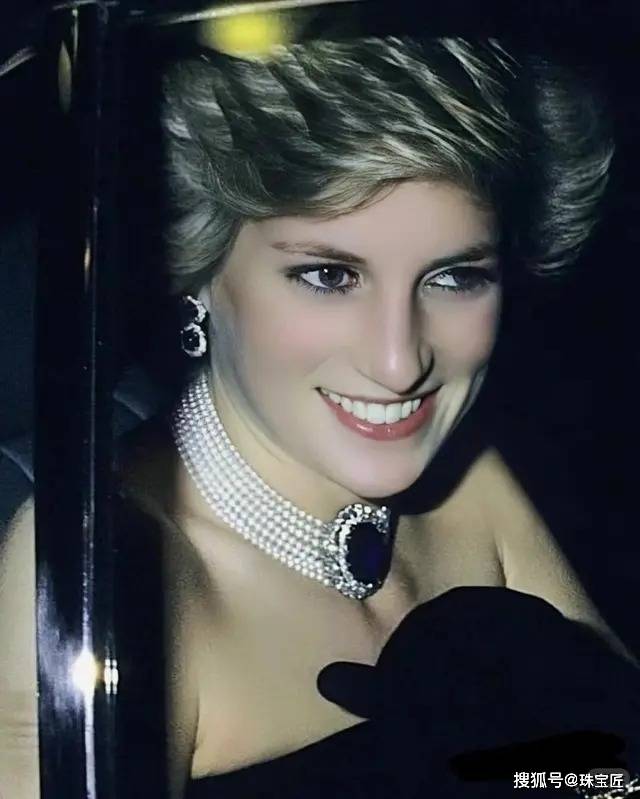 1她最经典的 “七层珍珠蓝宝石项链”,由王太后赠送的蓝宝石胸针改装而成,1985年白宫共舞、1994年 “复仇之裙” 造型中,这条项链都成为点睛之笔。