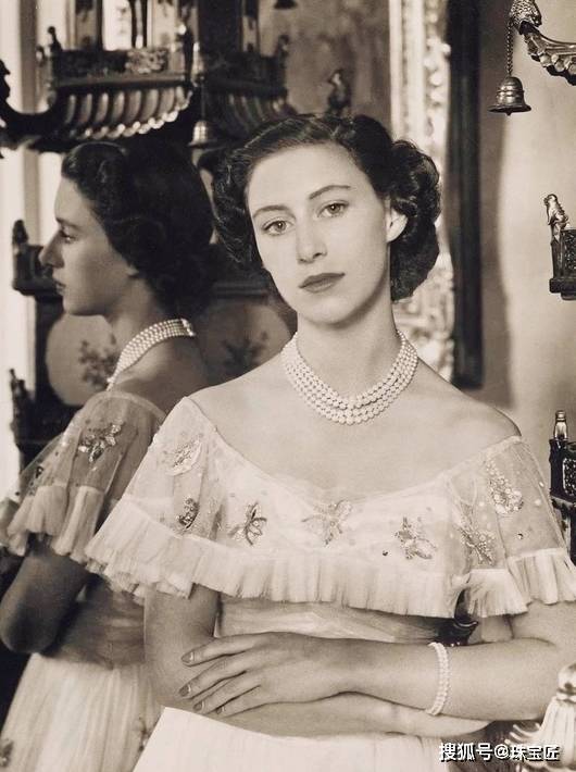 这张19岁的玛格丽特公主佩戴着她钟爱的五层珍珠钻石项链,留下的倩影,风华绝代。