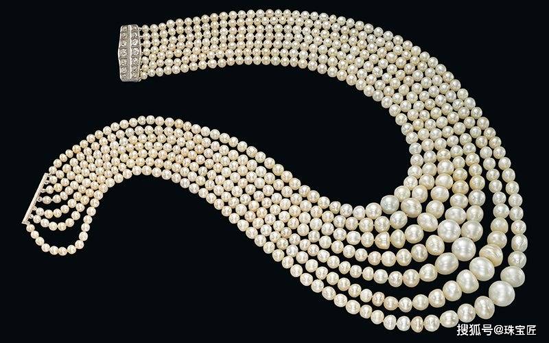 一些古董珠宝里,也有不少亮眼的多层珠链,受天然珍珠的身份和背后的 “显赫出身”加持,往往拍出天价。