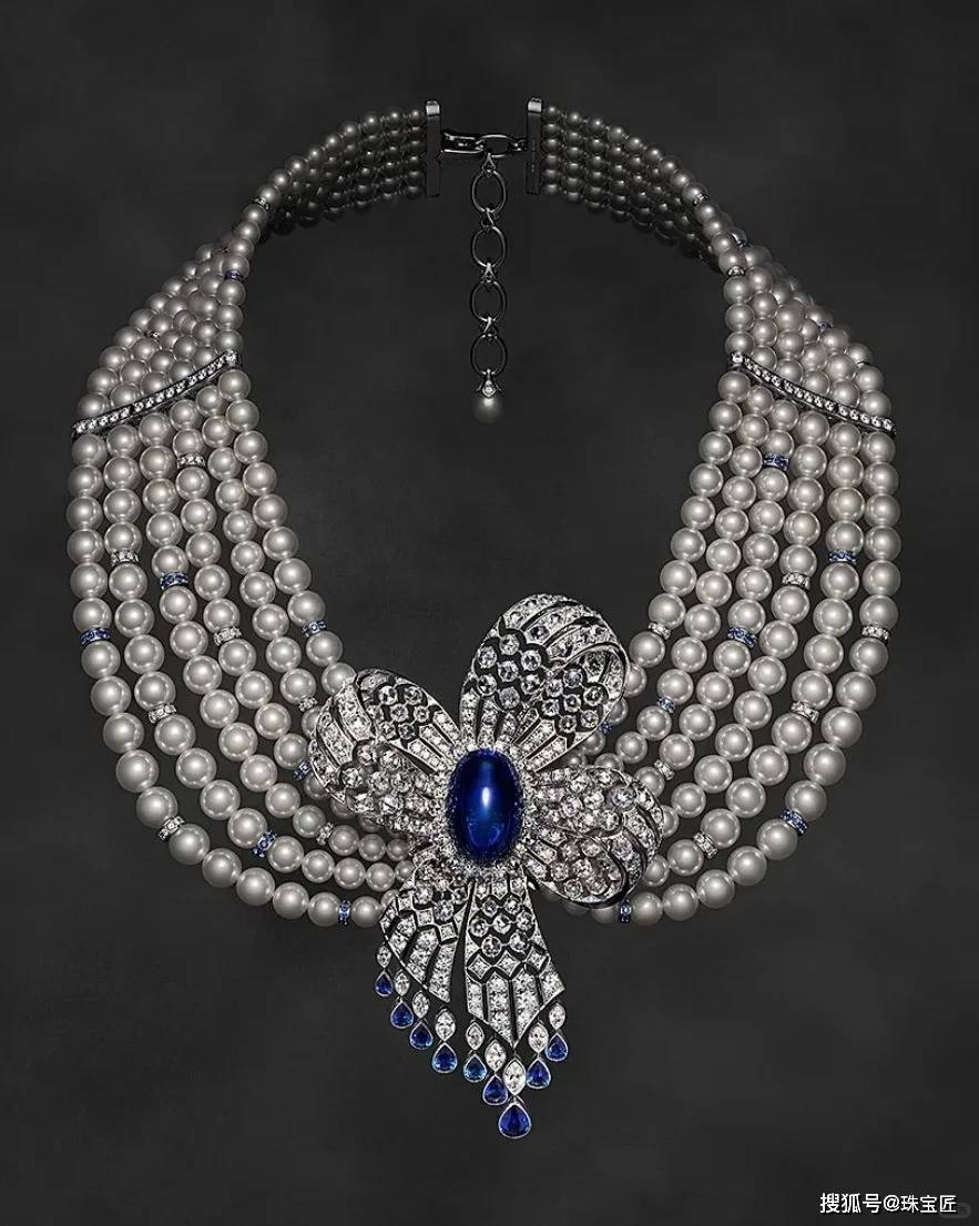 王室之外,卡地亚、御木本、香奈儿等大牌,也都呈现过不俗的多排珠链作品。(毕竟比起红蓝绿这些宝石项链,珍珠简直是最容(便)易(宜)就能堆出大体量和奢华感的珠宝了)