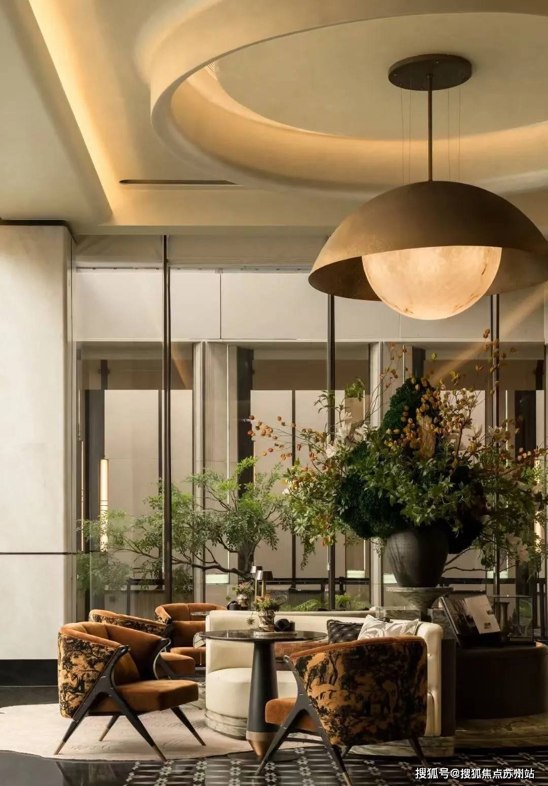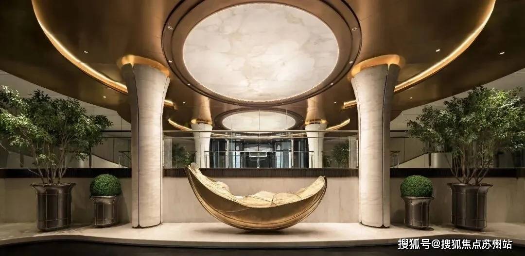 一汪深邃的「宇宙之心」漩涡水景,灵感源自梵蒂冈博物馆举世闻名的双螺旋楼梯,模仿宇宙星系流转的宏大景象,纳藏天地万物生生不息的力量。
