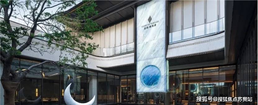 深藏于建筑怀抱之中的下沉式「琉璃光院」,是历经数十版方案淬炼出的灵魂之作。御湖境标志性汉白玉玄月族徽,与高10米的蓝水晶奢石光幕,共同演绎“日月同辉”的震撼场景。庭院深处50年乌桕树王矗立。